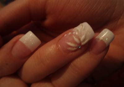 вот мои ногти, после выпускного.. правда фото не оч. хорошее, там маленькие цветочки нарисованы